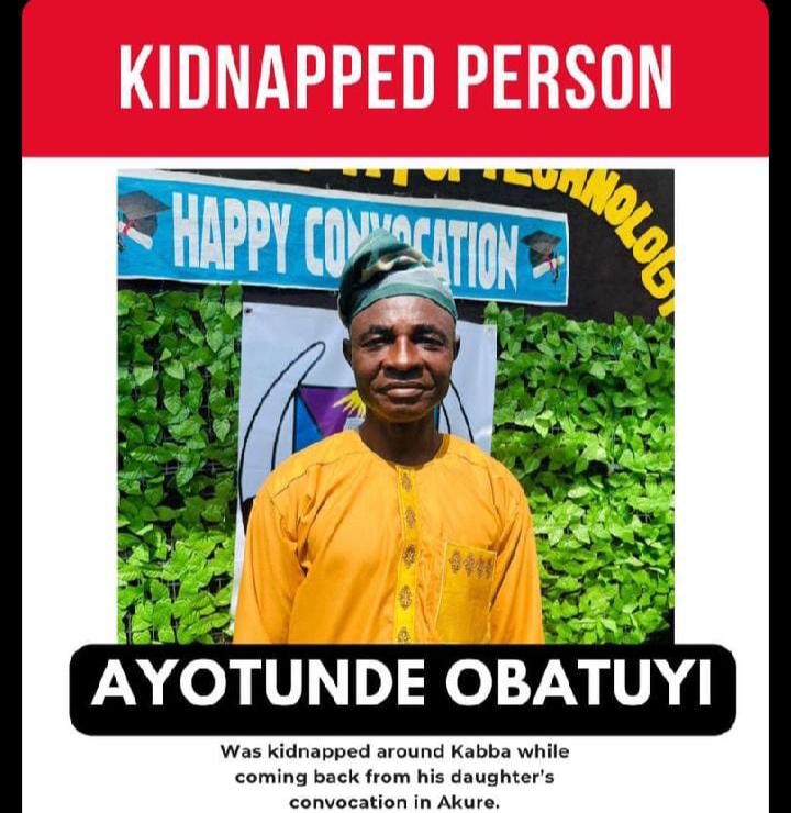 A Nigerian lady identified as Obatuyi Funke, known on X (formerly Twitter) as @funkysguide, has cried out in distress after her father was kidnapped in Kabba, Kogi State. The incident reportedly happened while her father was returning from her convocation ceremony.
